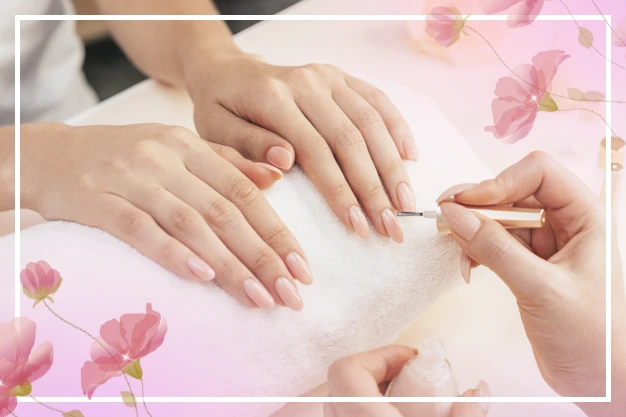 La beauté des mains qui consiste à nettoyer, limer, polir les ongles, repousser les cuticules et hydrater. Ensuite, on applique une base, du vernis et un top-coat, pour protéger et faire briller.